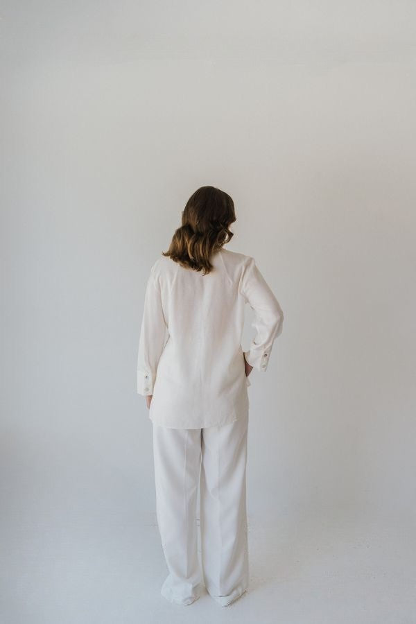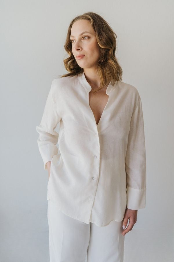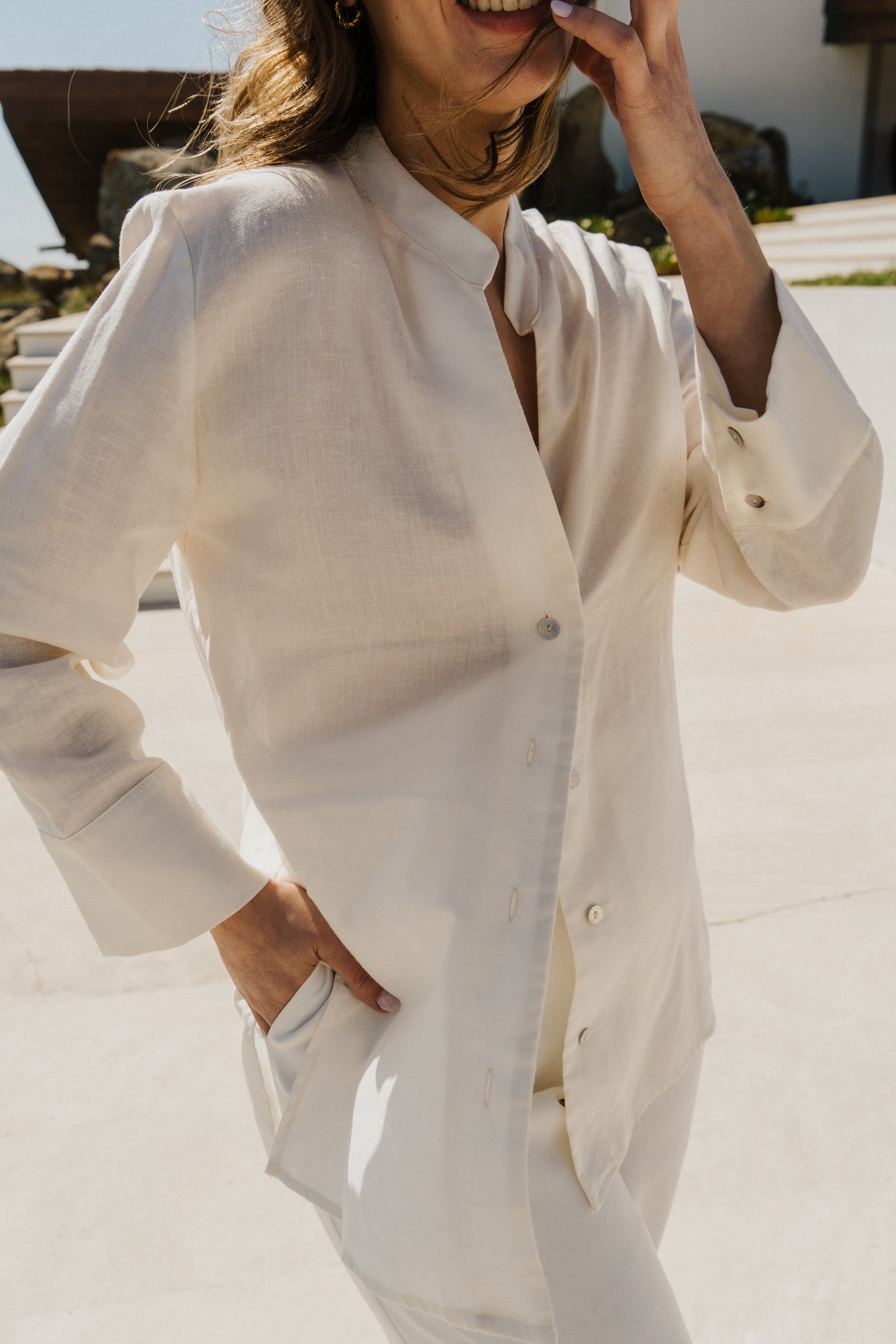 A Camisa Essencial combina tencel e linho premium para entregar uma experiência leve, fresca e elegante. A textura natural dos materiais cria um caimento confortável, enquanto o design minimalista reforça a versatilidade que acompanha o ritmo da mulher contemporânea.